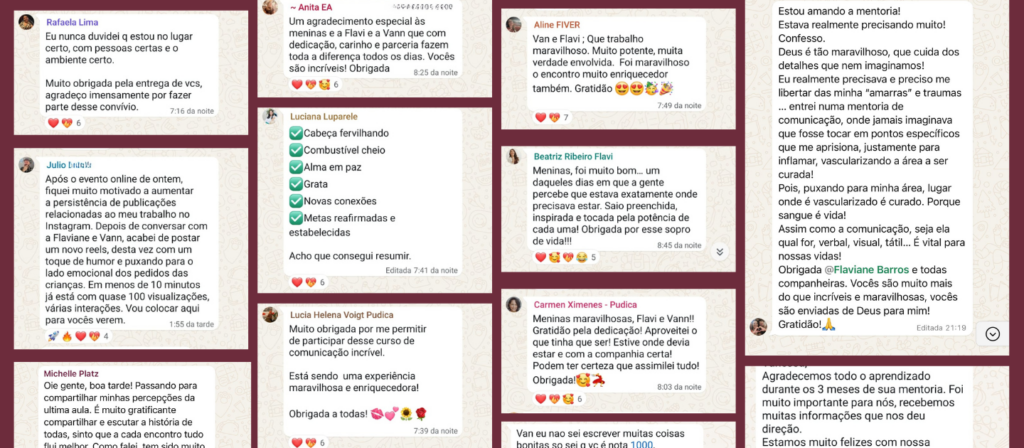 Com isso, decidi começar minha carreira do absoluto zero no mercado digital, e há quatro anos tenho o prazer de continuar dando aulas e podendo transformar a vida de outras mulheres que desejam ter uma comunicação com mais essência, identidade e estratégias.
